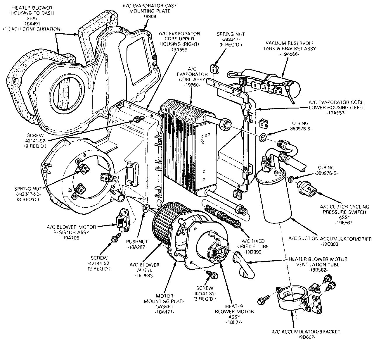 NOTE: If the evaporator core is replaced, the suction accumulator/drier must also be replaced.