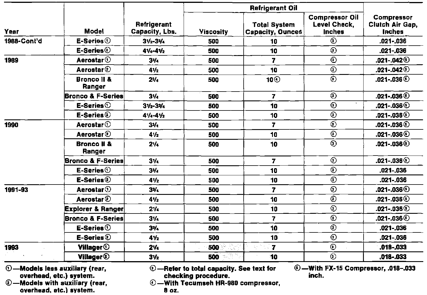 A/C System Specifications: