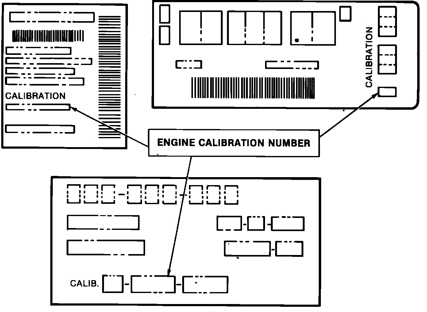 The Emission Calibration Label is attached to the drivers-side door or door post pillar. It identifies the engine year, calibration design, and design revision level. These numbers are used to identify service parts and engine specifications regarding the Emission Controls designed for the vehicle.