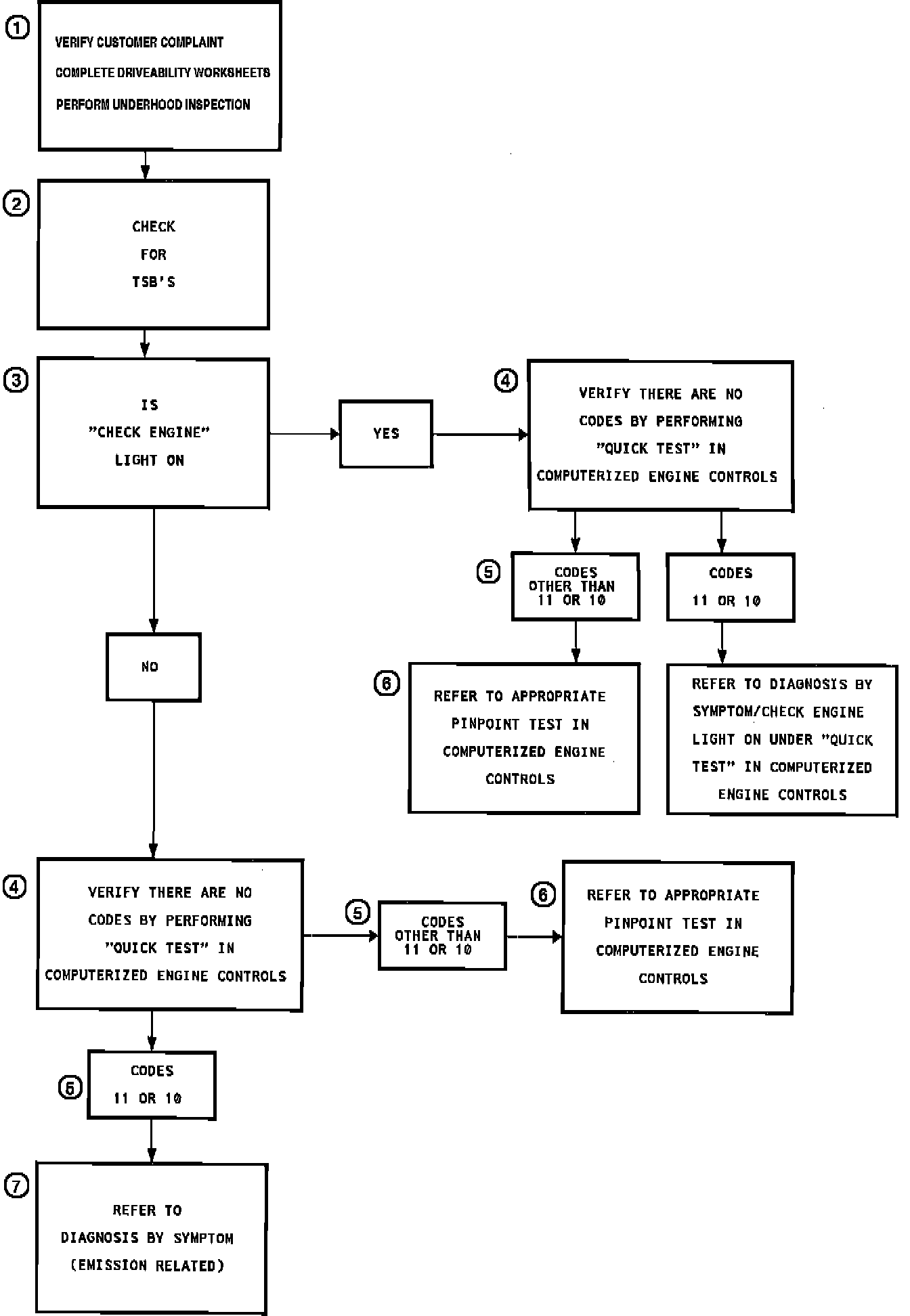 DIAGNOSIS BY SYMPTOM: You may be directed to this section by either the QUICK TEST or PIN POINT TEST. If either of these test indicate there are no computer related problems they may direct you to this section to correct faults not related to the EEC-IV System.
