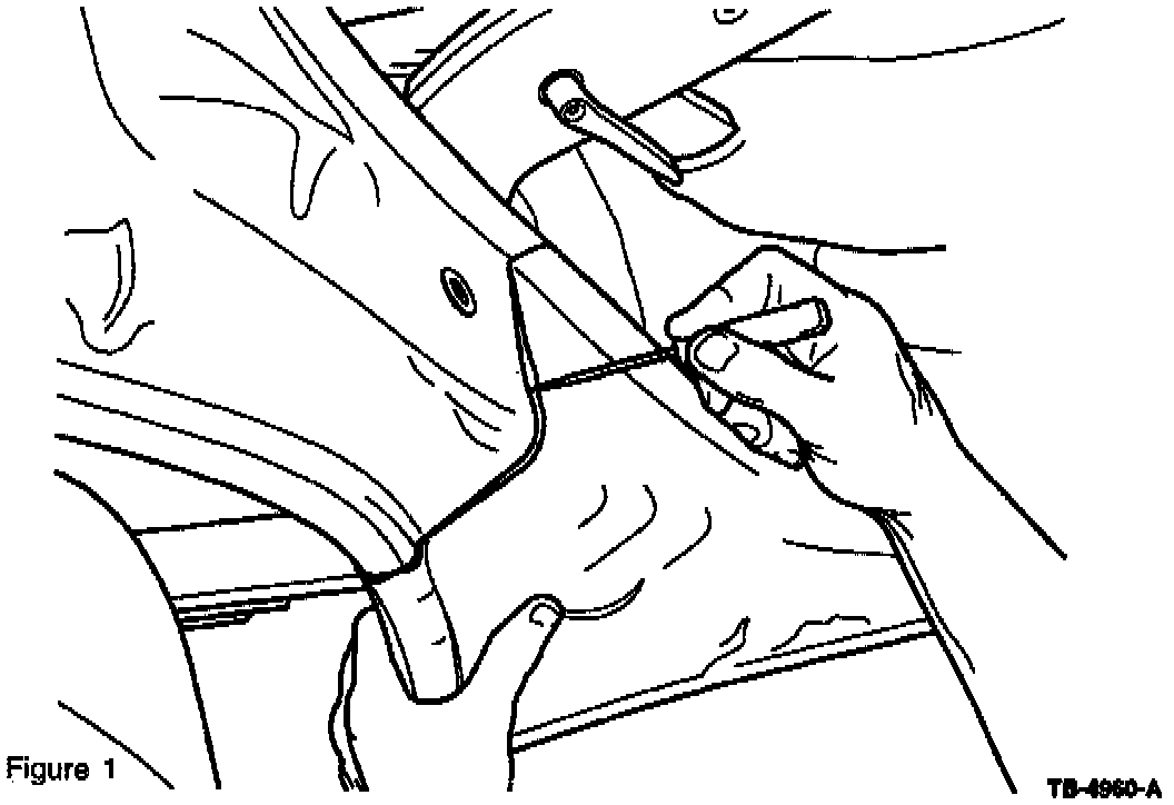 3. Install the appropriate panel covers (quarter panel, wheelhouse, door opening panel) directly on top of the corroded sheet metal and scribe a line across the upper edge (Figures 1 and 2).