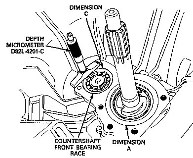 c. Dimension C--depth of countershaft front bearing race (transmission case to front cover mating surface).