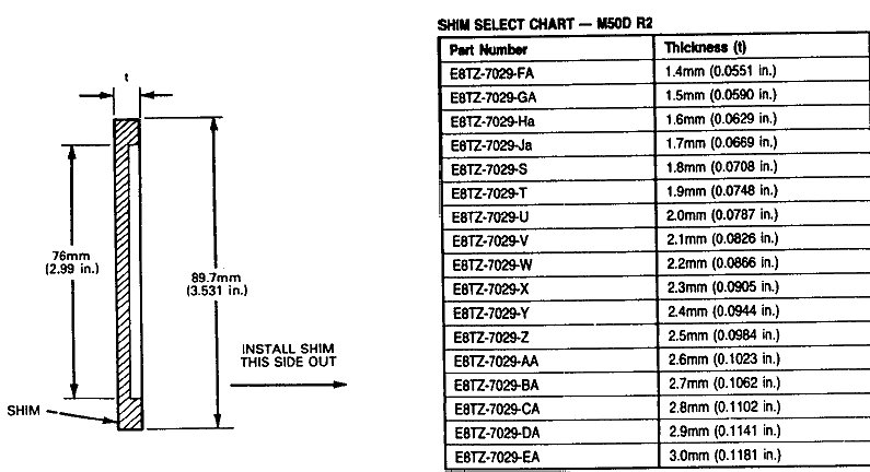 Reverse Idler Gear Endplay Selective Split Washer Chart: