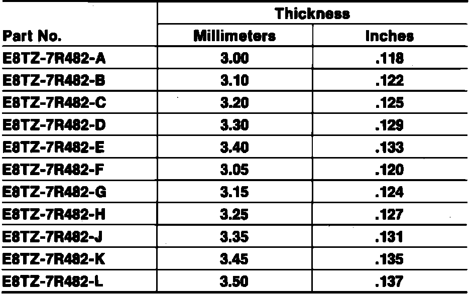 31. If endplay is not as specified, select a suitable thrust washer from chart, that will bring endplay to within specifications.