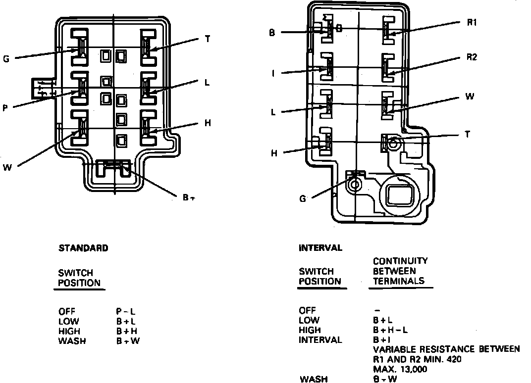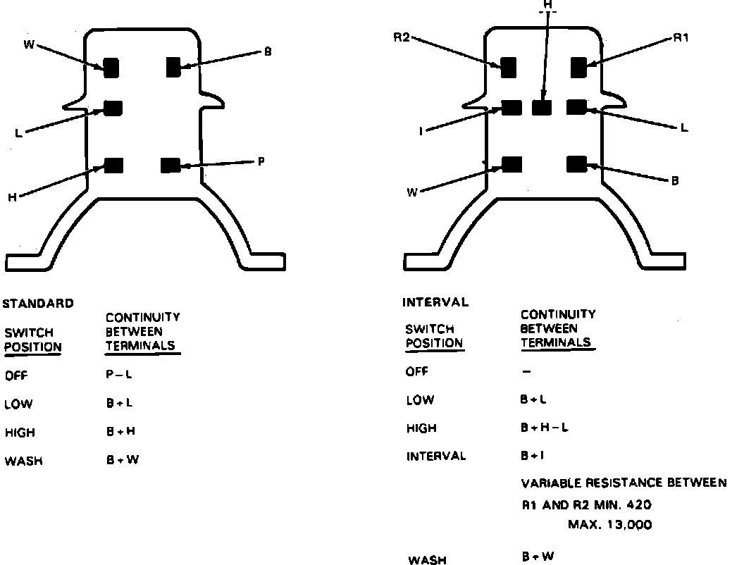 Fig. 6 Wiper Switch Continuity Test. Except 88 Bronco II & Ranger: