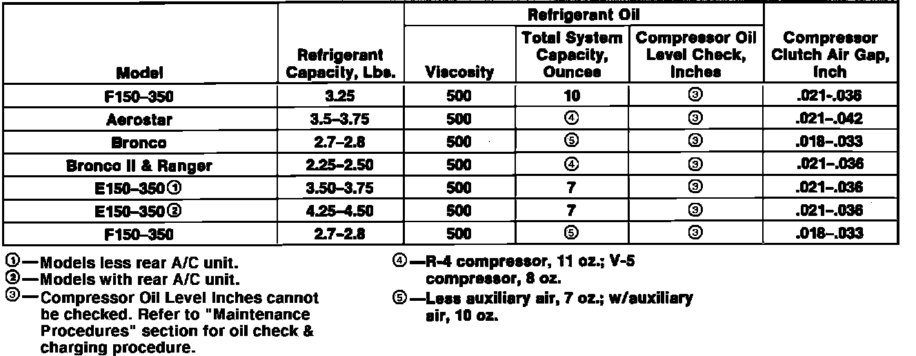 Air Conditioning Specifications: