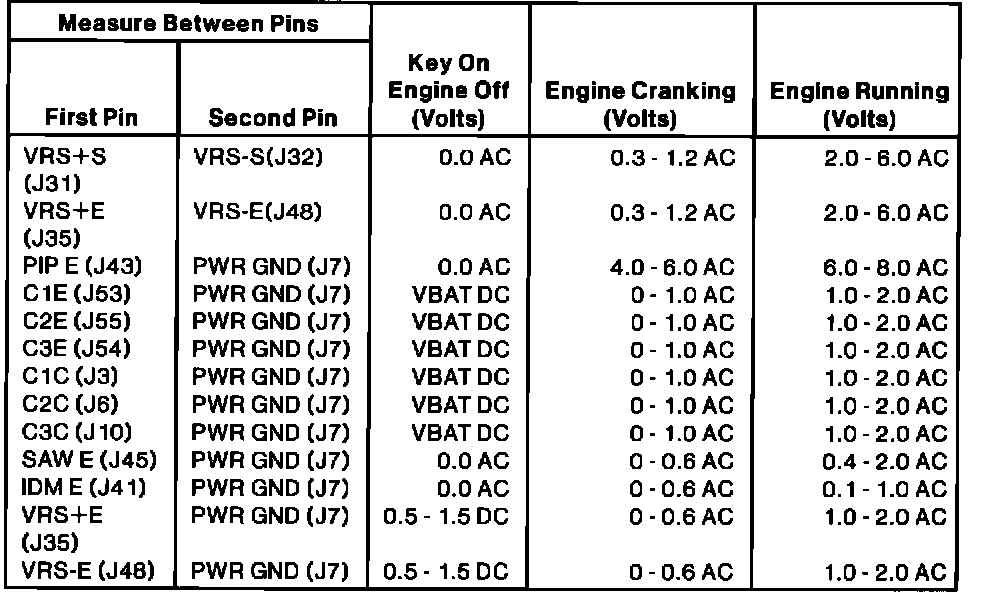 ^ Be careful not to bring a fluorescent trouble lamp close to the vehicle wiring. If the key is ON and the VR sensor is disconnected, the EDIS module may fire the coil.