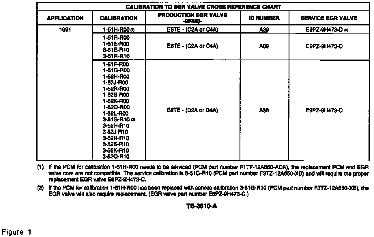 1. Verify the vehicle has the proper EGR valve installed. Refer to the charts to check which EGR valve is required. Replace the EGR valve with the proper service replacement EGR valve, if required (Figures 1 through 4).