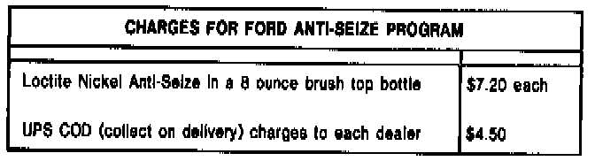 The Ford Dealership should call 1-800-338-9000, 8 AM - 5 PM (EST), or FAX 1-800-548-7389 and ask for the Ford Anti-Seize Program PN 23508.