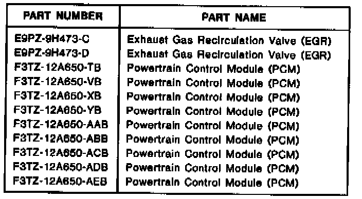 Eligible Under The Provisions Of Bumper To Bumper Warranty Coverage For 1992-94 Model Years, Basic Warranty Coverage For All Other Years - NOTE: Emission Warranty Coverage For MIL "On" And/Or EGA Valve Replacement