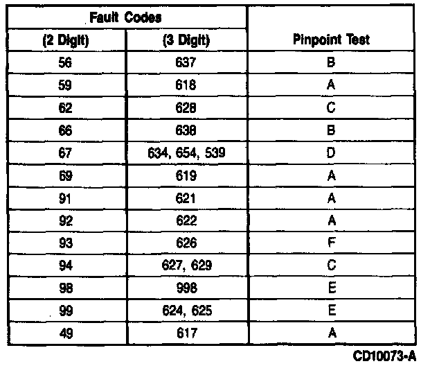 DTC To Pinpoint Test Conversion Chart.: