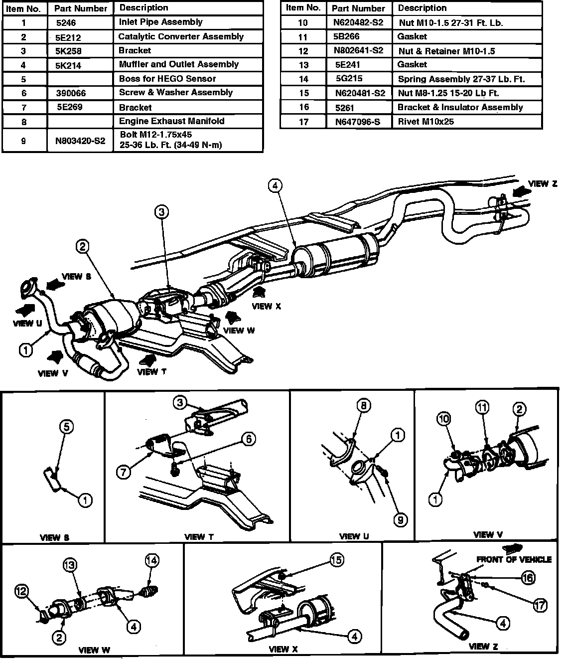 5. Install the converter to the outlet pipe using a new non-asbestos gasket. Install the fasteners and torque to 27-31 ft lb (36-42 Nm).