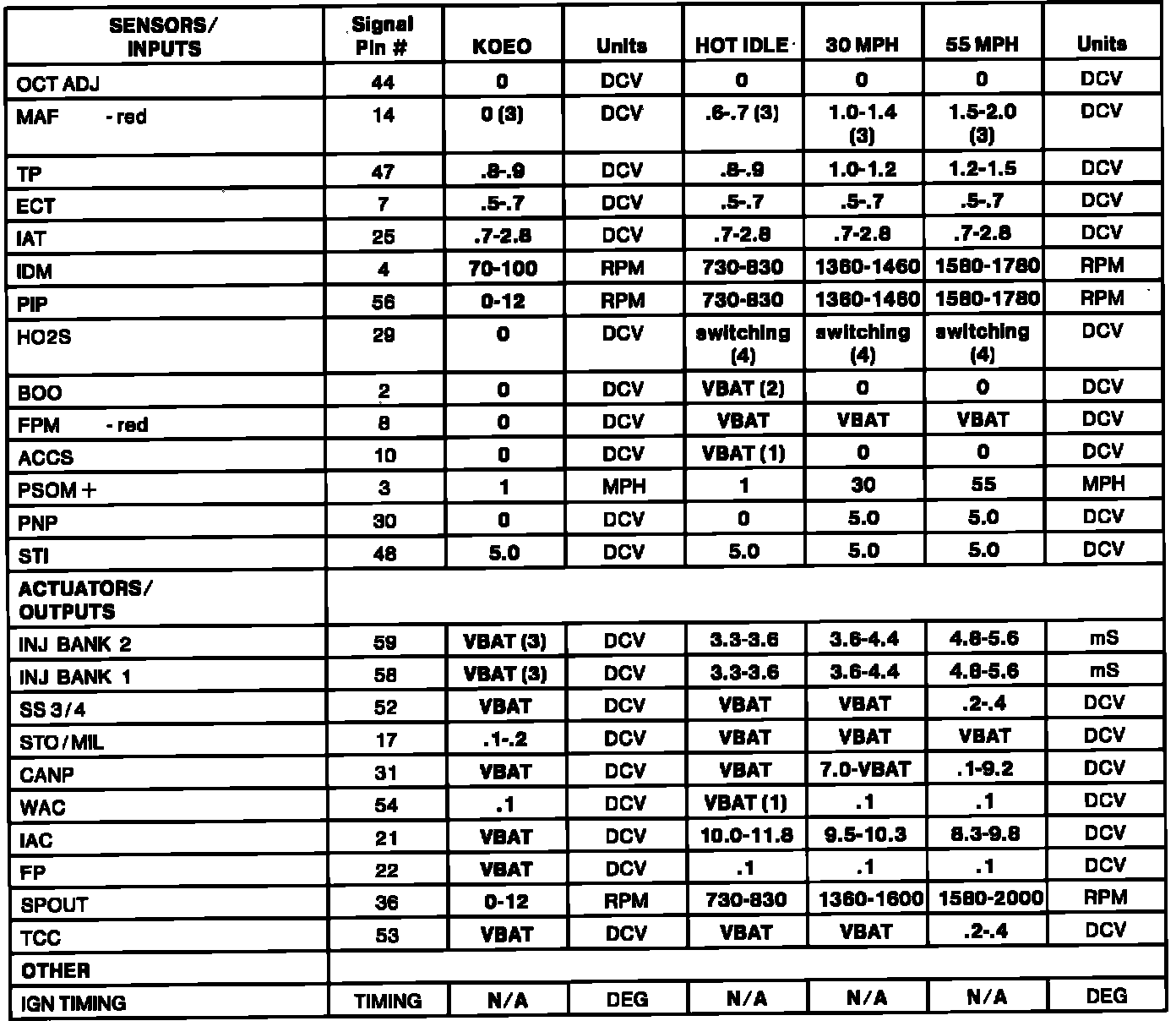 (4) -- HO2S should switch from rich (red LED) to lean (green LED), or lean to rich, at least once every 3 seconds. HO2S voltage should toggle above and below .450 DCV and should never be a negative value.
