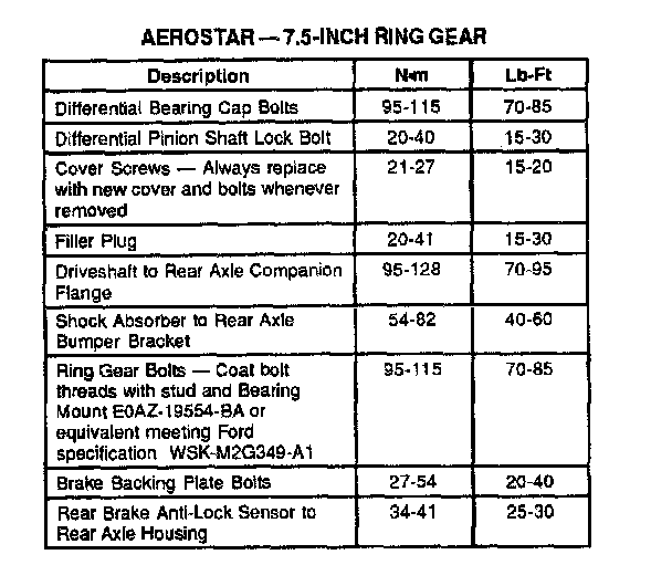 Ford 7.5 Inch, Differential Torque (Aerostar):