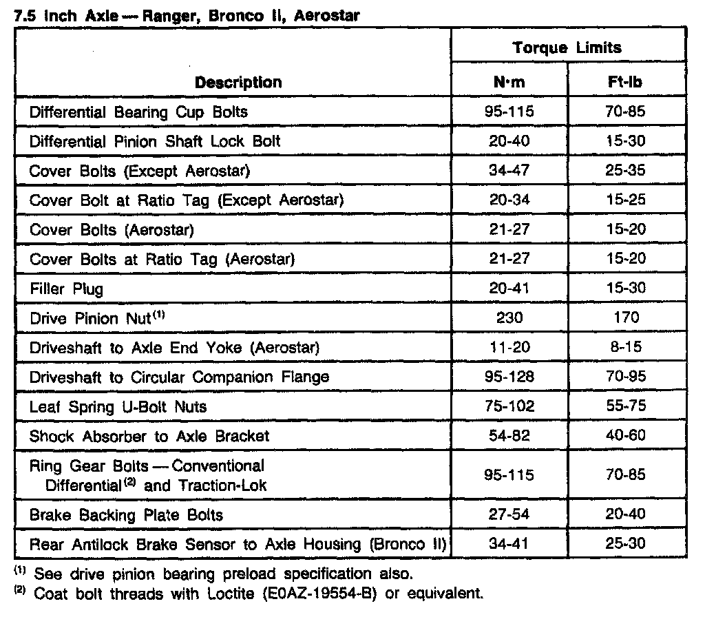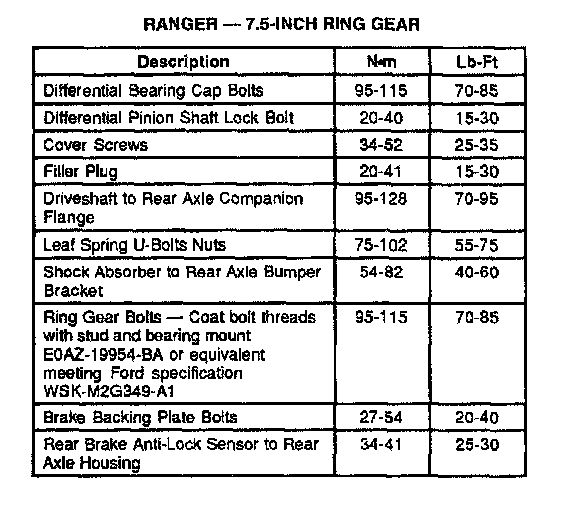 Ford 7.5 Inch, Differential Torque (Ranger):