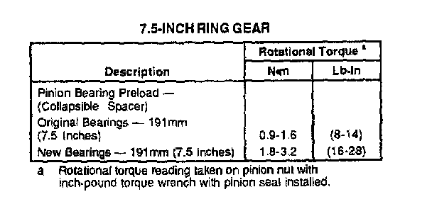 Ford 7.5 Inch, Pinion Bearing Preload: