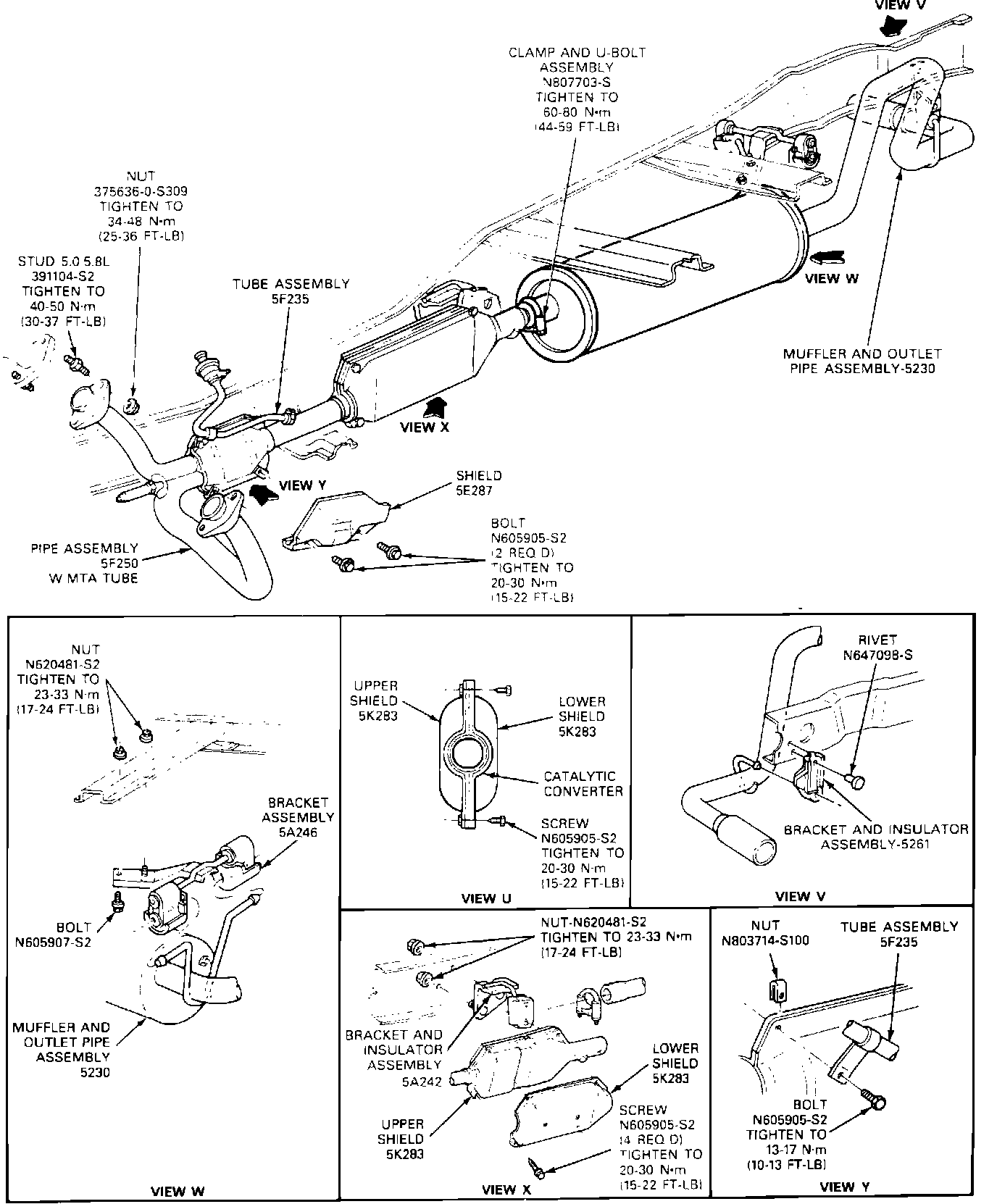 8. Torque the Y-pipe to exhaust manifold bolts to 25-36 lb. ft. (34-49 N-m).