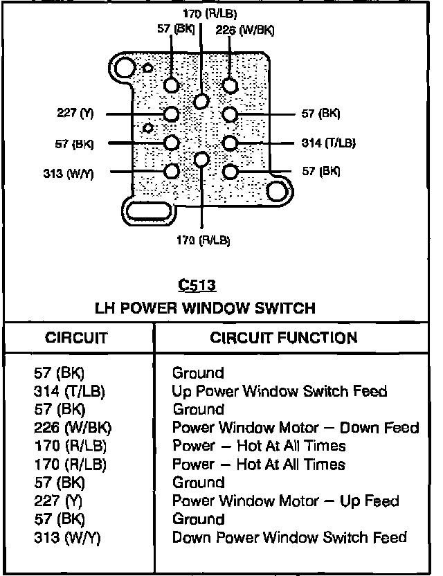 LH Power Window Switch: