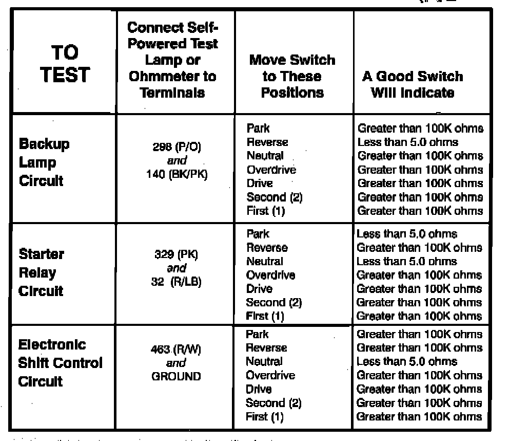 Park/Neutral/Backup Position Switch: