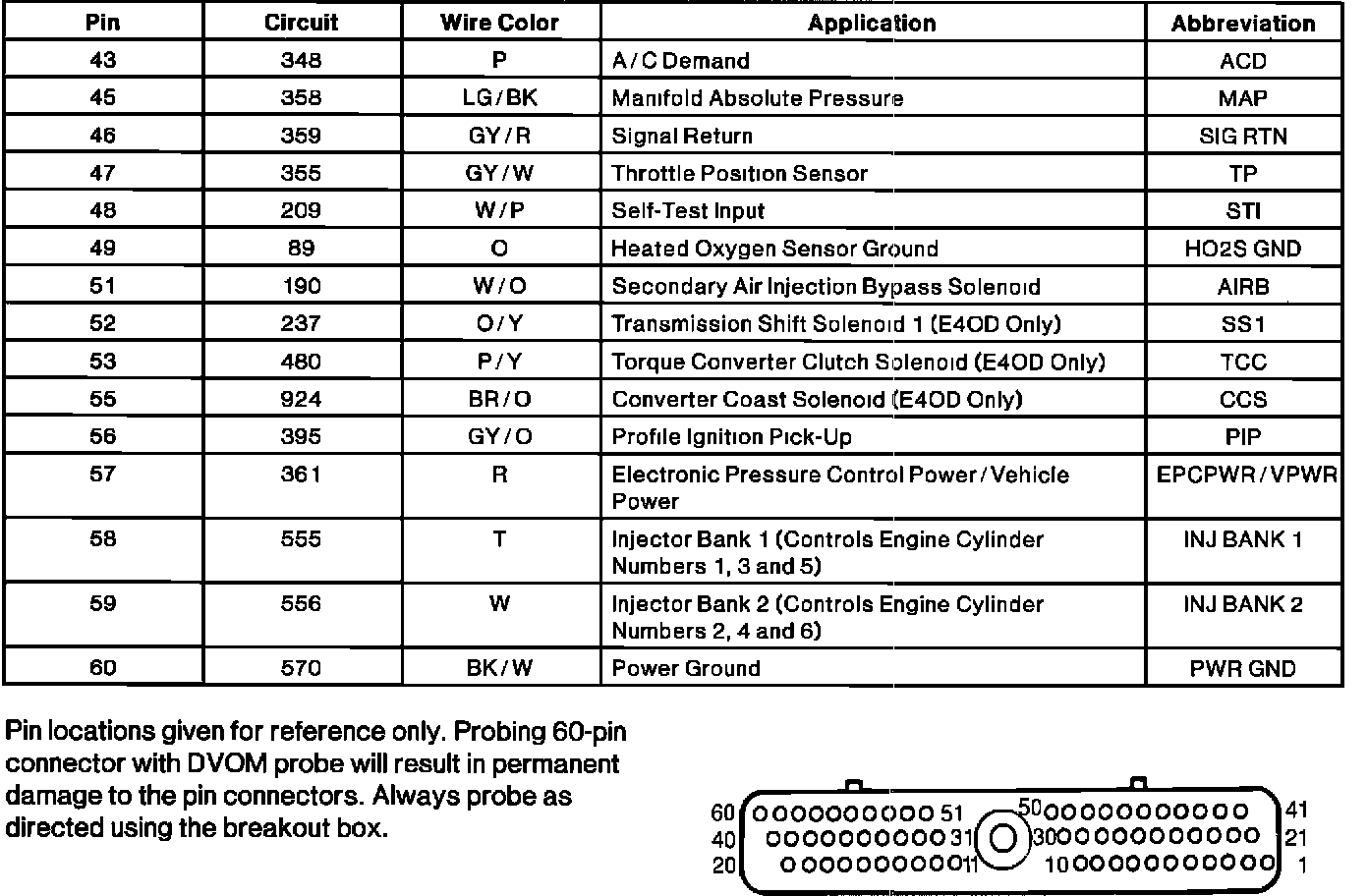 Powertrain Control Module (PCM) Connector Pin Useage: