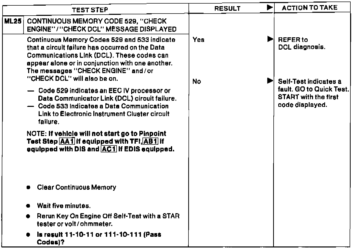 ML25 - Continuous Code 529, "Check Engine"/"Check DCL"