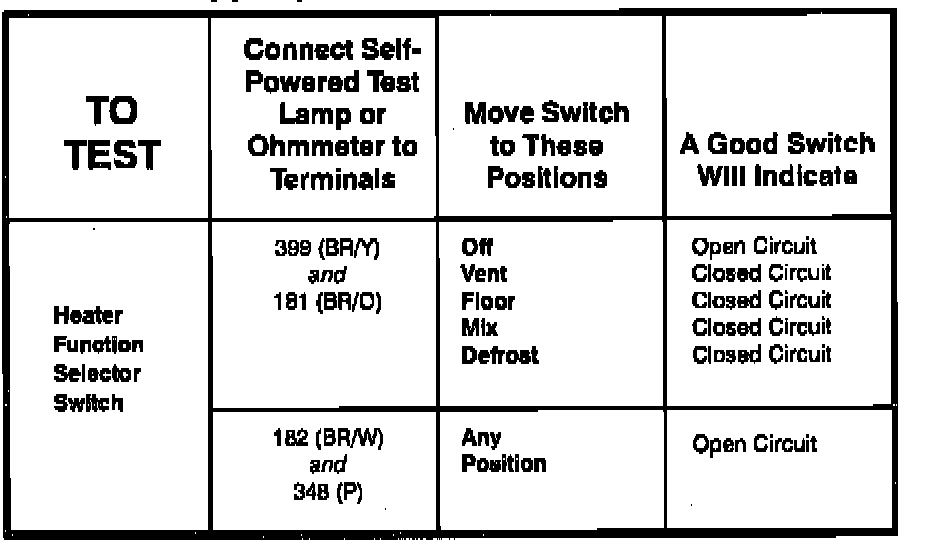 Heater Function Selector Switch - Schematic: