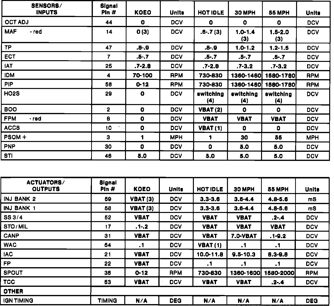 Some Electronic Engine Controls (EEC) devices such as Intake Air Temperature (IAT), Engine Coolant Temperature (ECT) are temperature dependent and values may vary. Other Values such as Idle Air Control (IAC) and Injector Pulsewidth (INJ) are calibration dependent and may vary also.