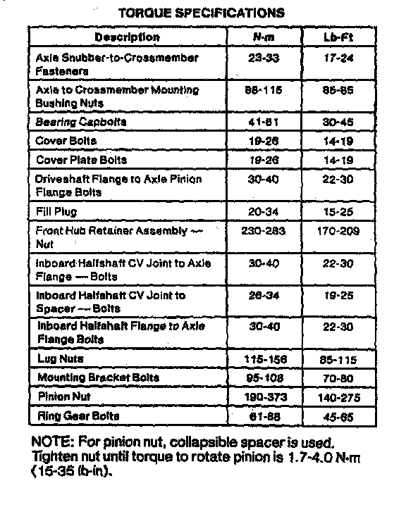 Torque Specification