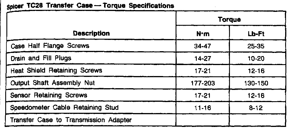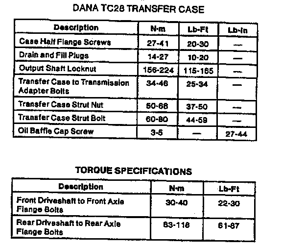 Spicer TC28, Transfer Case Torque: