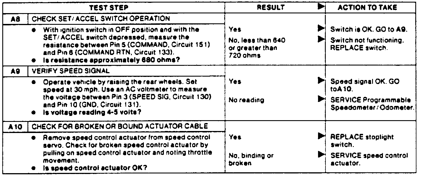 Test A: Speed Control Inoperative.: