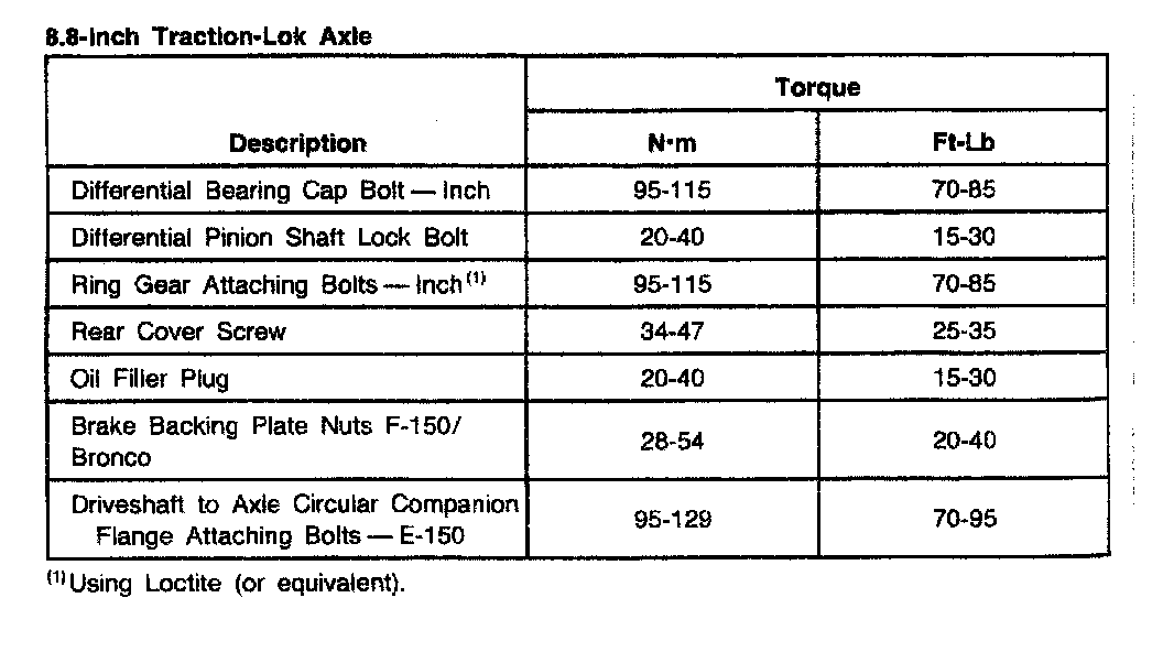 Ford Traction Lok 8.8, Rotating Torque: