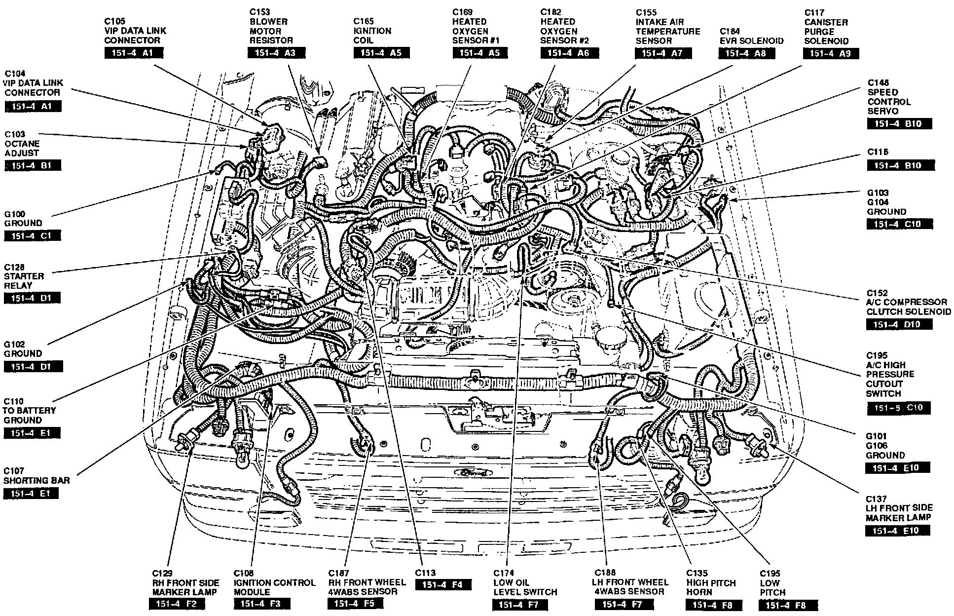 The SPOUT connector shorting bar (C107), is located at the RF corner of the engine compartment, near EDIS.