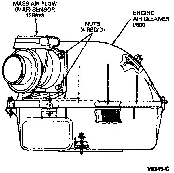 1. Loosen air cleaner outlet tube clamp at Mass Air Flow Sensor (MAF) and remove tube from sensor.