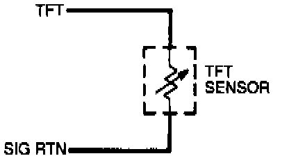 The Transmission Fluid Temperature (TFT) sensor is a thermistor that changes resistance in response to temperature. The TFT sensor resistance decreases as the surrounding fluid temperature increases. The resistance variation is converted into a voltage signal and sent to the PCM to give an indication of the transmission fluid temperature.