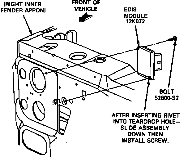 3. Remove the ignition module retaining bolt and remove the module by sliding the assembly up until it is released from the teardrop shaped hole in the sheet metal.
