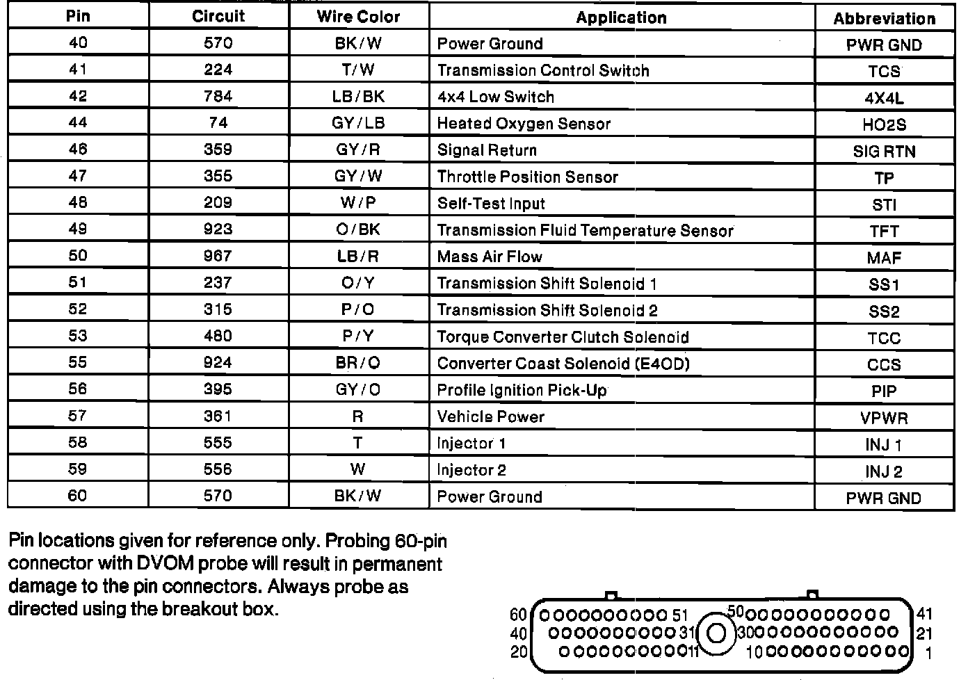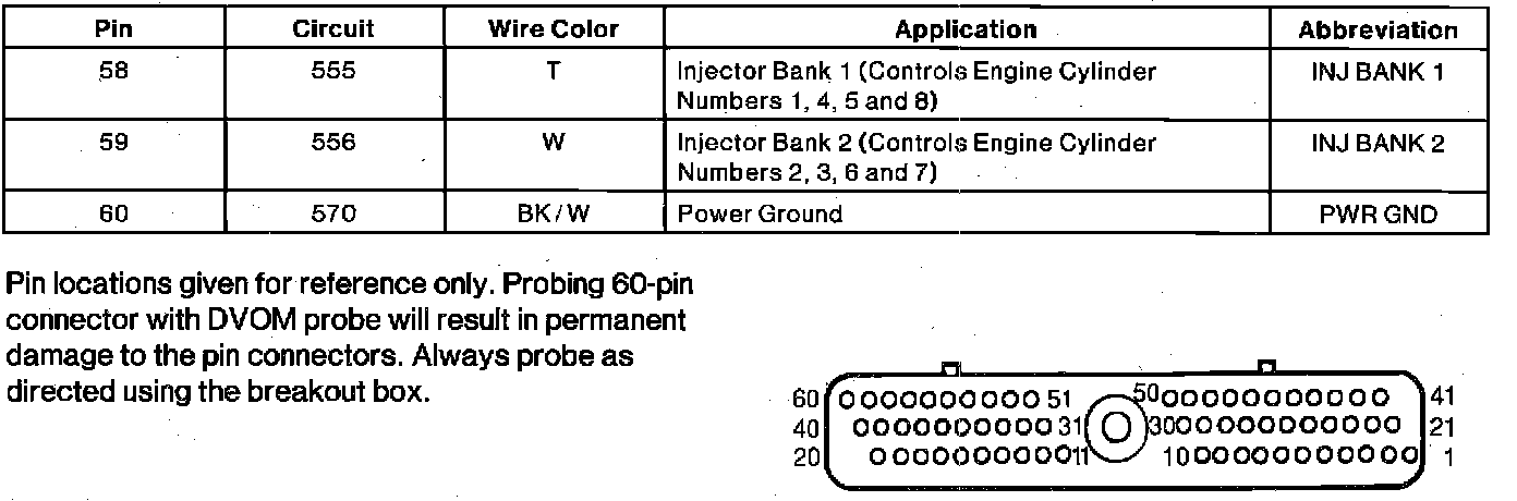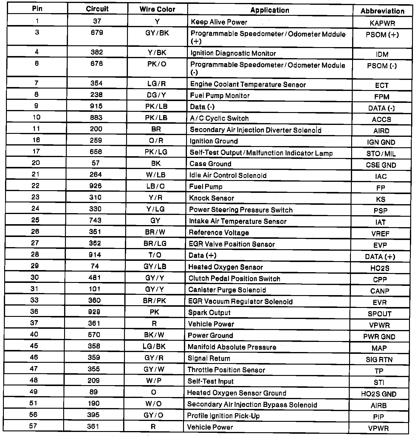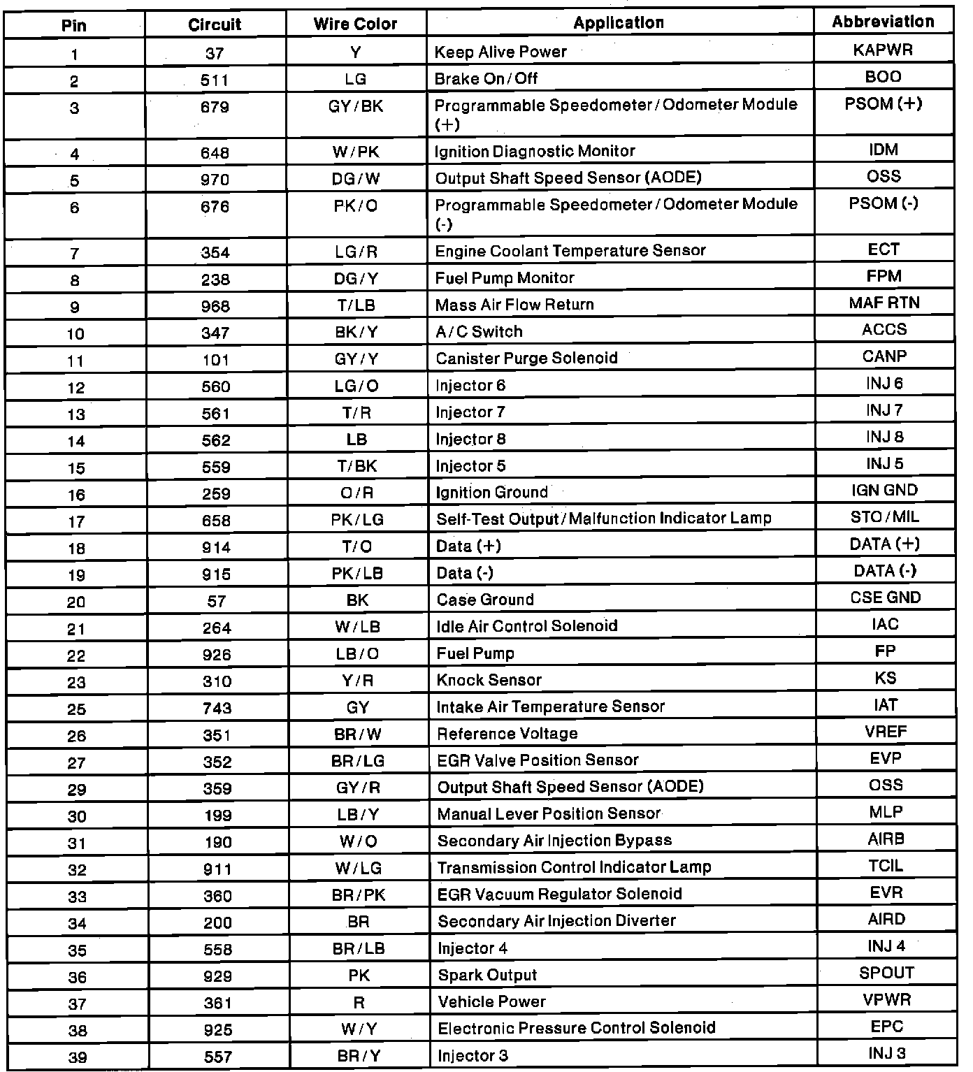 Powertrain Control Module Connector Pin Useage W/Multiport Injection: