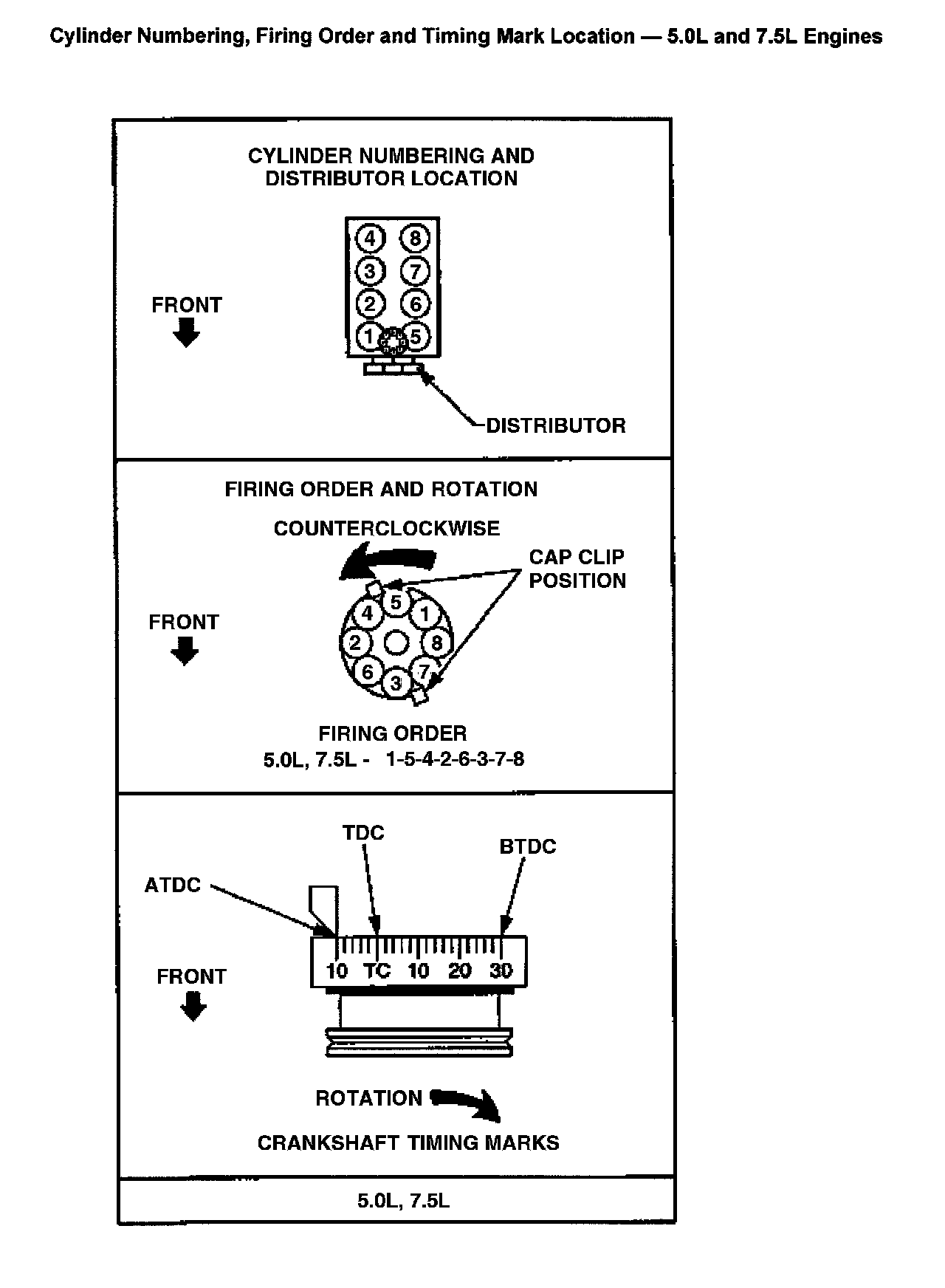 Cylinder Numbering, Firing Order, And Timing Mark Location 5.0 & 7.5: