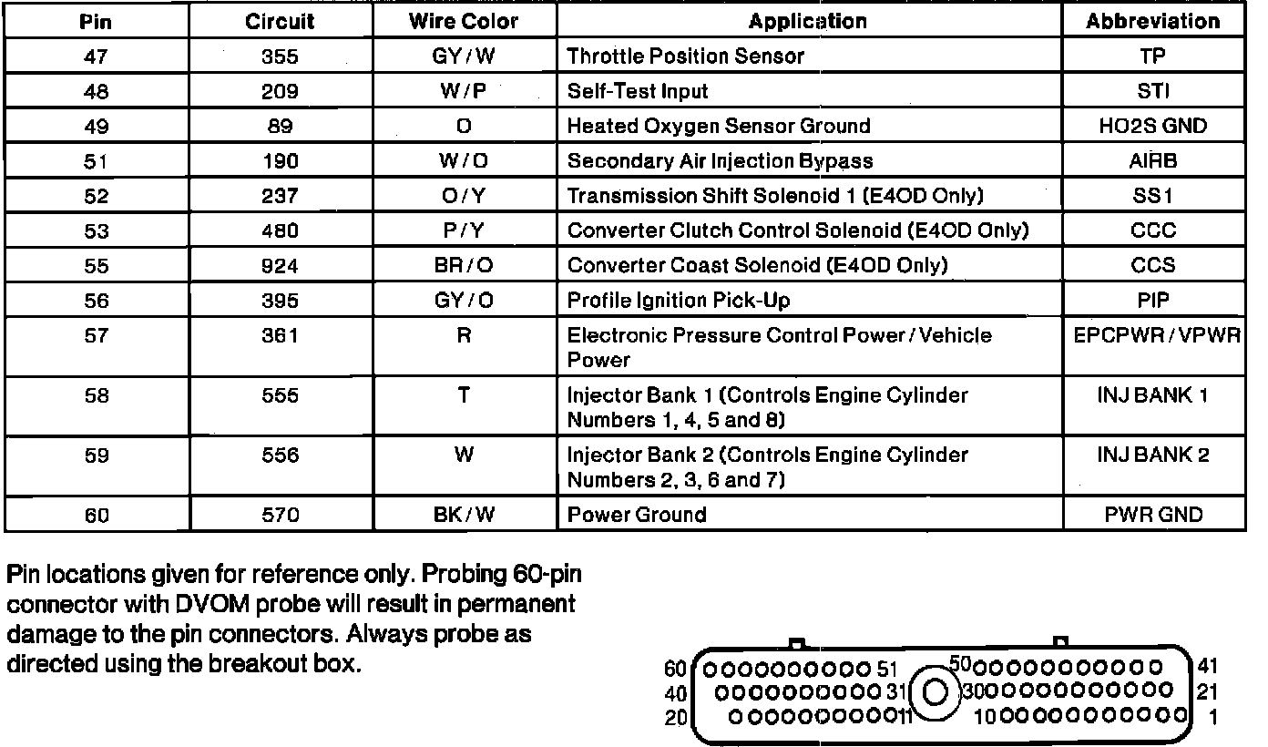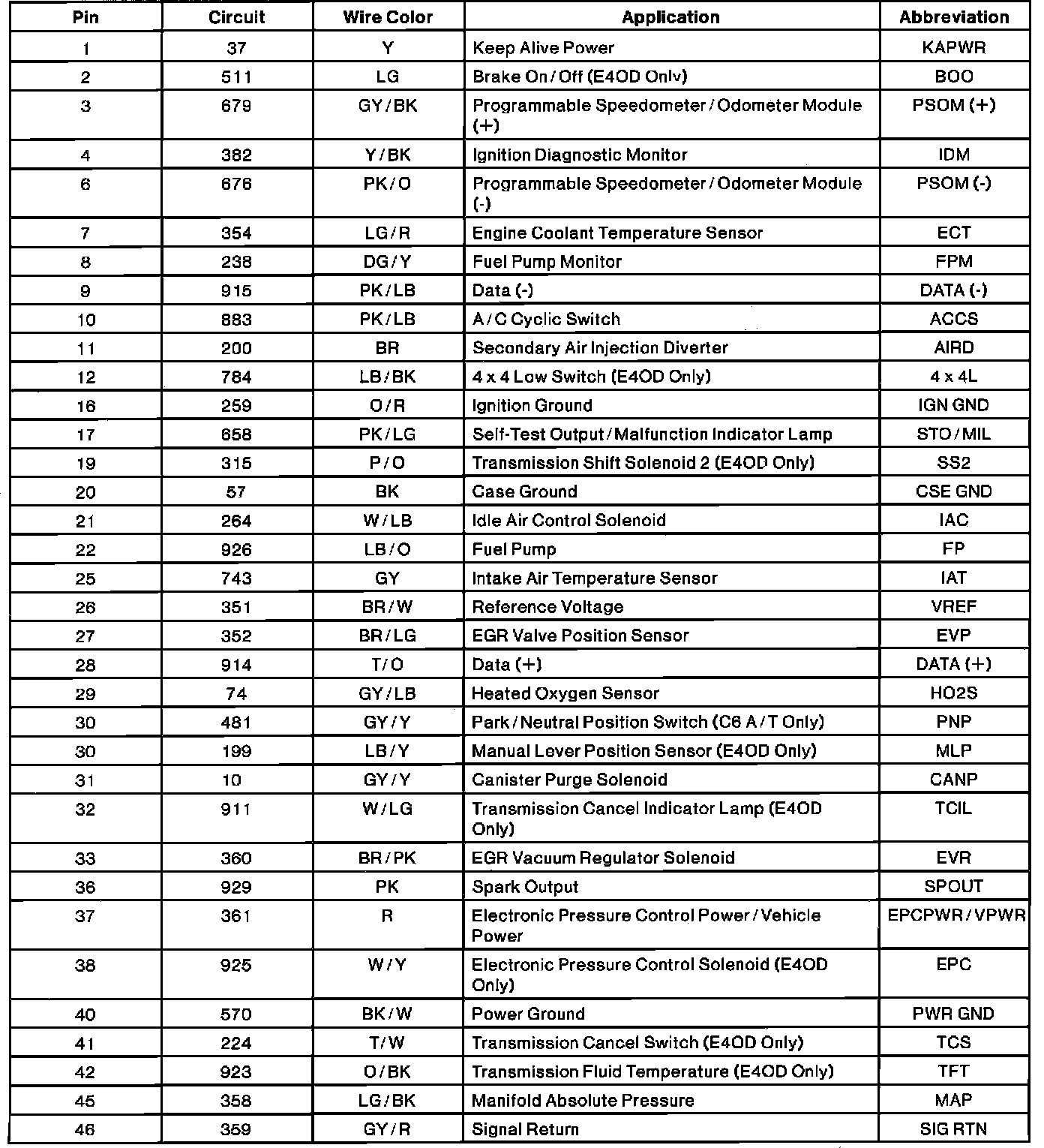 Powertrain Control Module Connector Pin Useage: