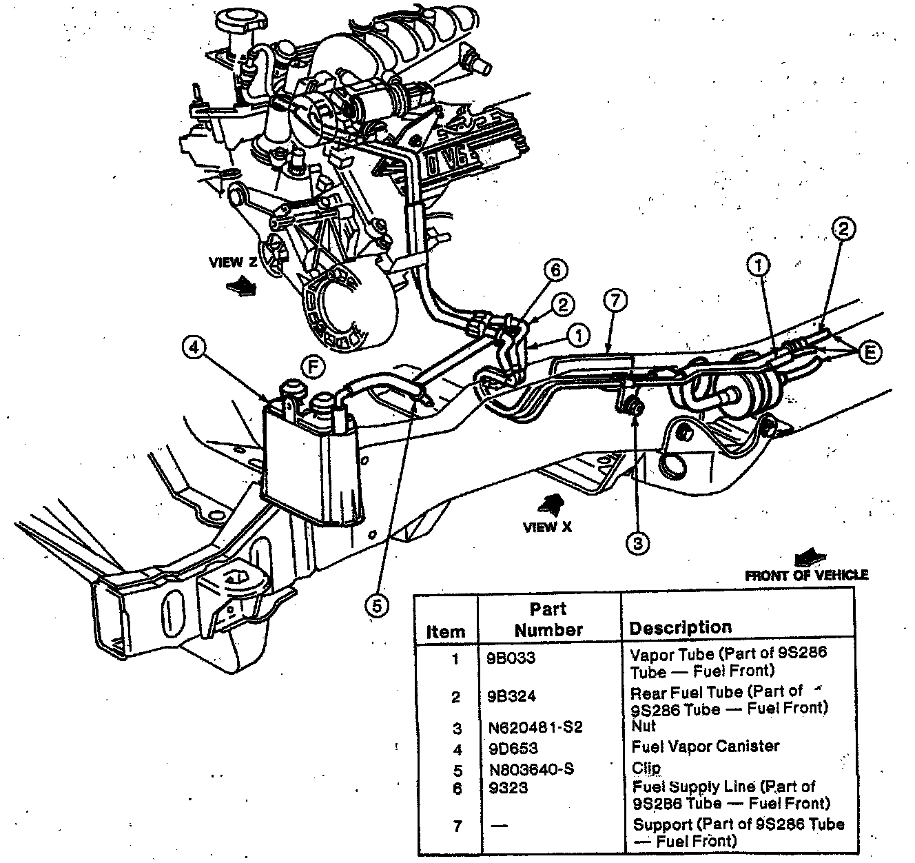 Vapor lines and canister position.