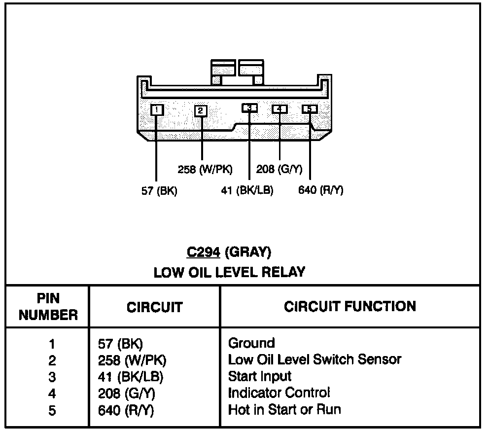 Engine Low Oil Level Relay: