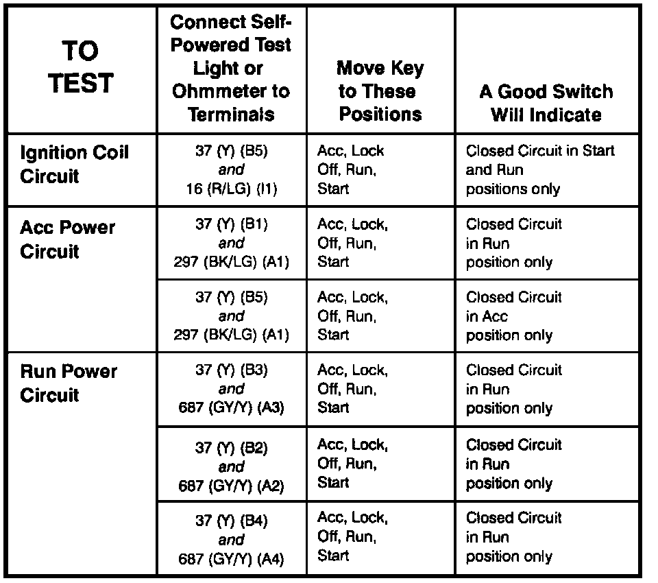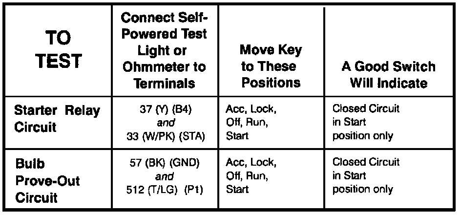 Ignition Switch - Component Testing Procedure (Part 2 Of 2):