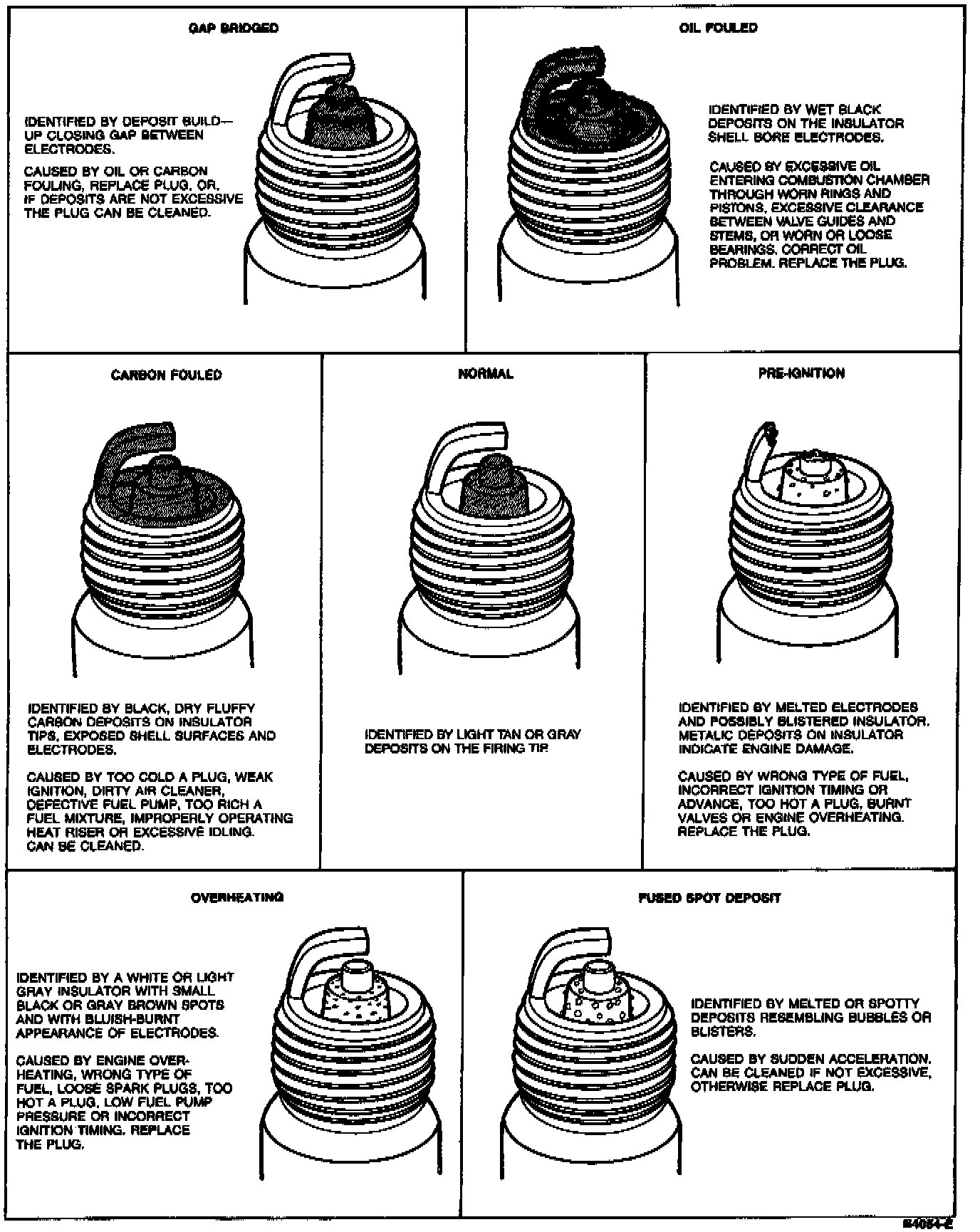 4. Refer to the Spark Plug Inspection Chart to determine spark plug condition. Replace spark plugs as required.