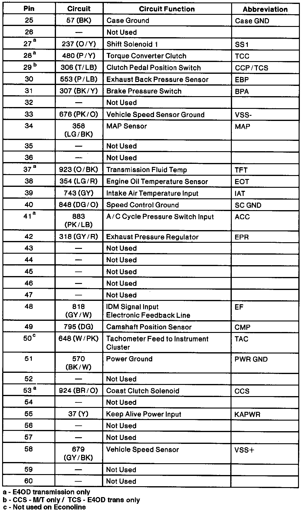 PCM Pinout Chart