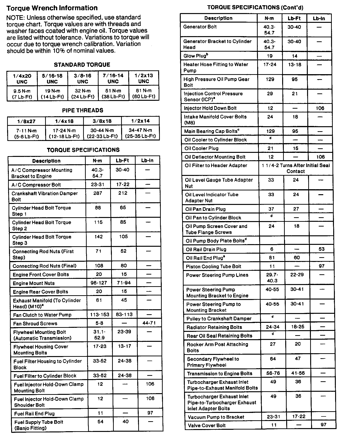 Torque Specifications