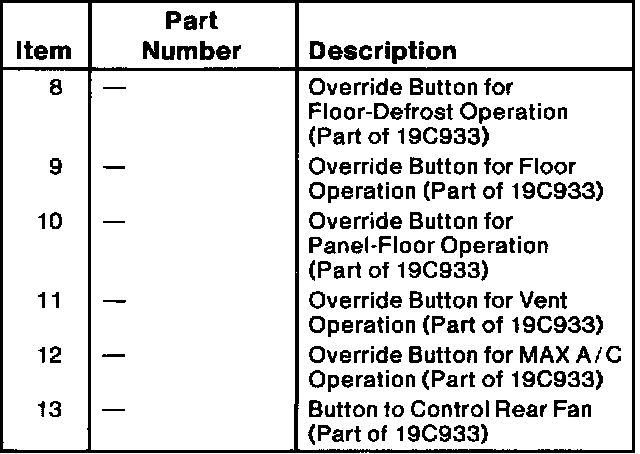 Pressing this button will stop operation of the rear blower assembly. It will not permit rear blower operation until it is pressed a second time.