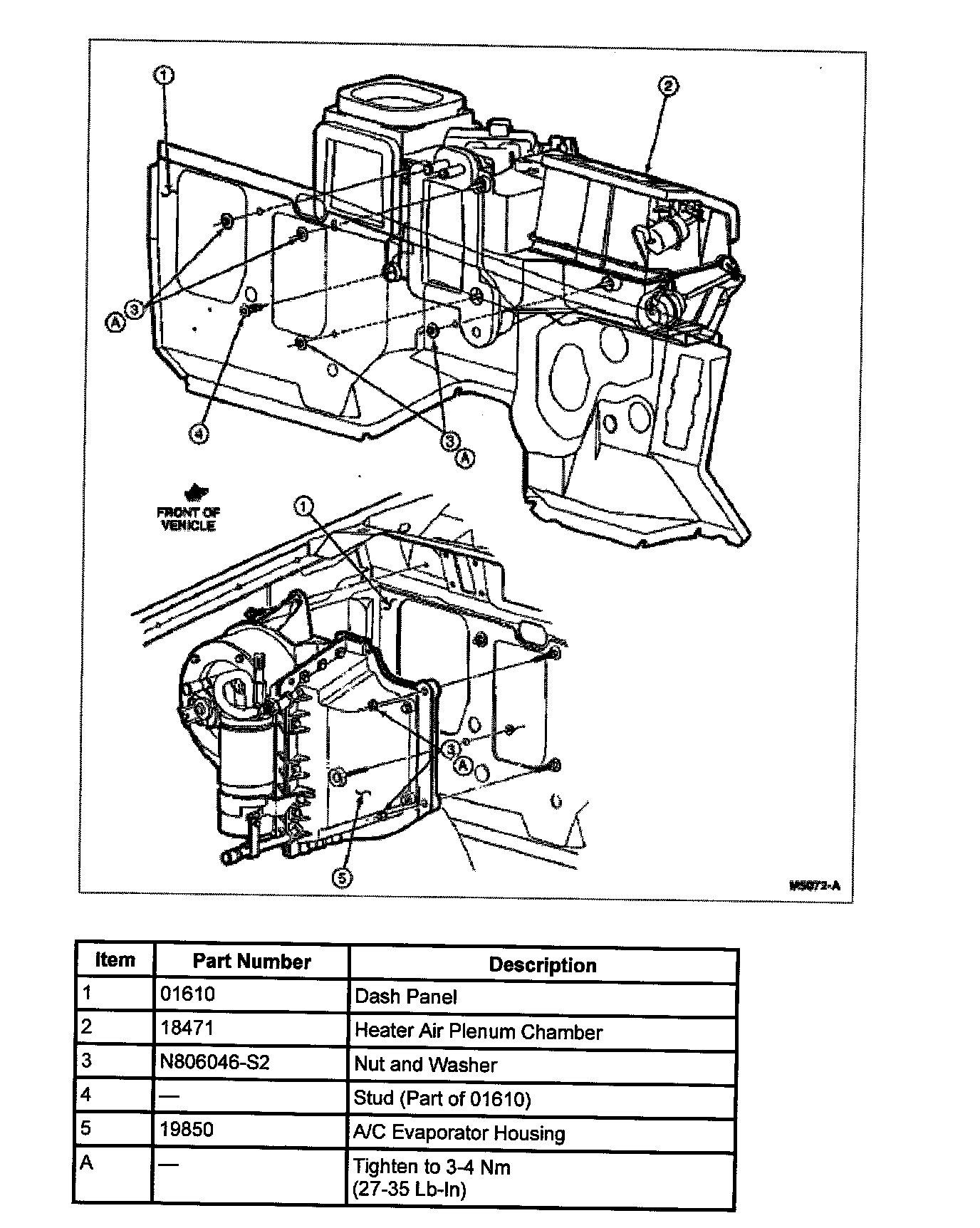 7. Remove the four nuts retaining the A/C heater air plenum chamber from inside the engine compartment and the one nut inside the passenger compartment.