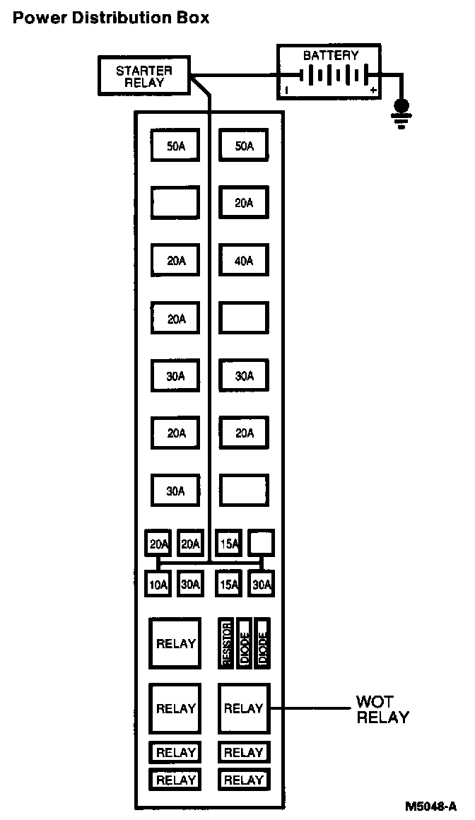 2. Remove the power distribution box cover and locate the WOT relay in cavity EE.