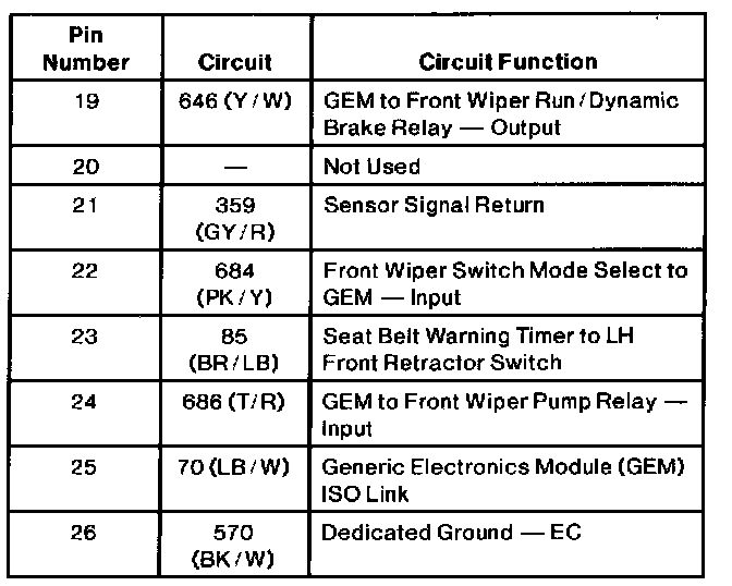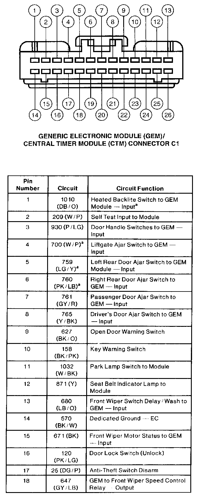 GEM/CTM Connector C1 Part 1 Of 2: