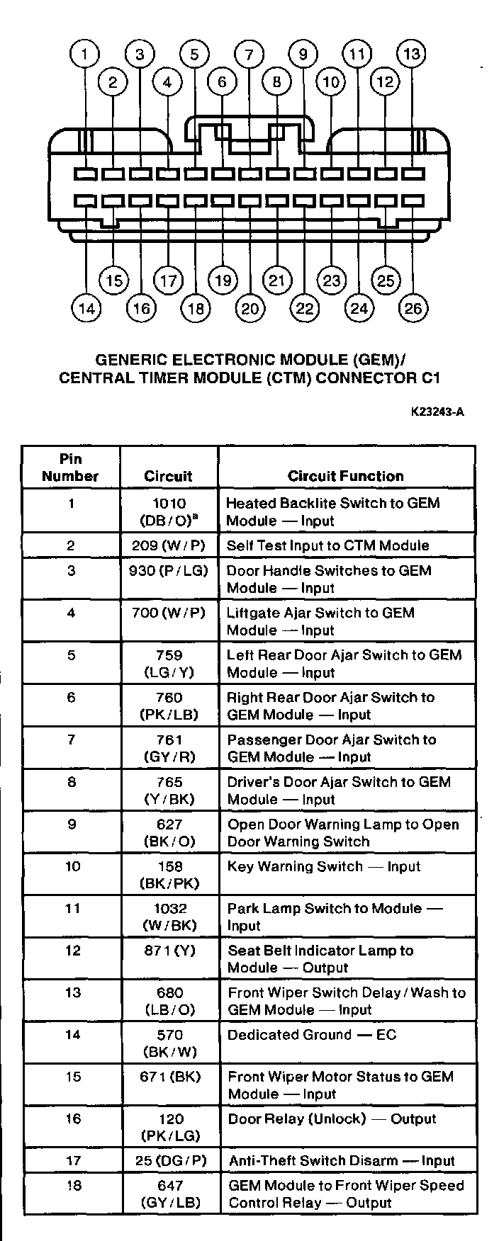 GEM/CTM Connector C1: