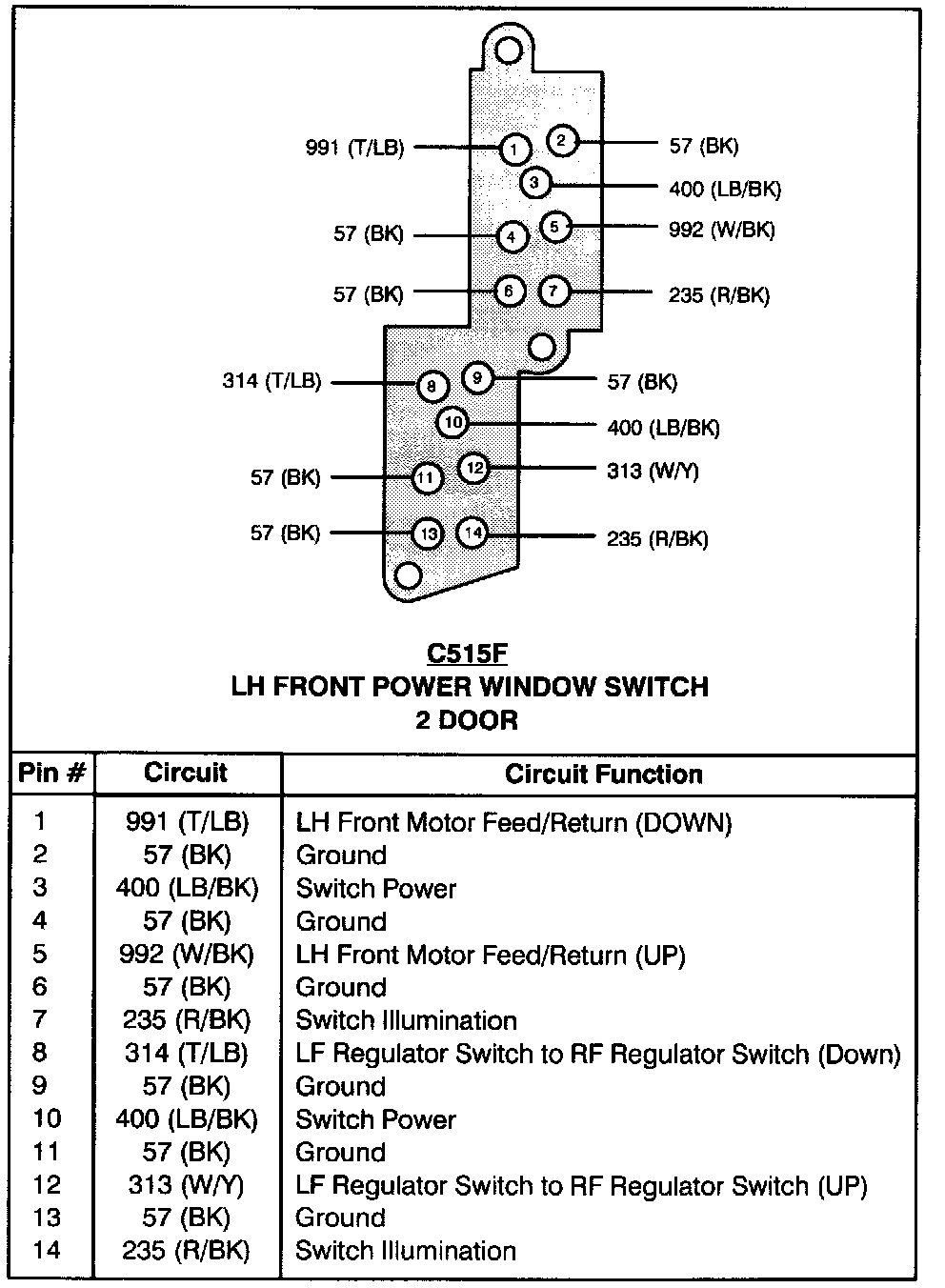 LH Front Power Window Switch (2 Door):